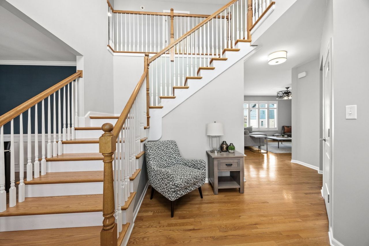 Located in the sought after Farmingdale Village subdivision, this beautifully maintained 4 bedroom, 3 full and 1 half bathroom home offers a perfect blend of modern updates, functional space, and timeless design. Built in 2013, the home features a welcoming two story foyer and open concept main level ideal for both everyday living and entertaining. The fully remodeled kitchen (2024) showcases white cabinetry with updated doors and hardware, a large island with quartz countertops and pendant lighting, custom backsplash and a brand new sink and faucet. The kitchen flows seamlessly into the spacious living area with gas fireplace, along with an adjacent flex space currently used as a breakfast area, also perfect for a home office or additional seating. A formal dining room with crown molding and wainscoting, convenient mudroom with built in cabinetry and hooks off the 3 car attached garage, and a well appointed powder room complete the main level. Upstairs, the primary suite offers a spacious layout with a large walk in closet and a private bath featuring dual vanities, a separate tub, and a shower. All additional bedrooms include walk in closets, and the second floor also features a full hallway bath with a tub and shower combination and a conveniently located laundry room. Hardwood flooring was added throughout the entire second floor in 2024. The finished basement (2018) provides excellent additional living space, including a full bathroom and a dedicated exercise room with specialty flooring and sliding frosted glass pocket doors, easily adaptable for a potential fifth bedroom, guest suite, or flexible living space. Additional improvements include a tankless water heater (2025) and plantation shutters are featured throughout the home. Enjoy the outdoor space with a paver patio and fully fenced backyard, perfect for relaxing or entertaining. Ideally located within the Prairieview District 66 and Downers Grove South High School District 99 boundaries, with convenient access to major highways, schedule your private showing today. The lot behind the property is also available for sale MLS #12610240.
